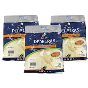 3 pacotes com 50 unidades. Dedeira extra fina n. 04 no tamanho 28mm x 75mm. Material as luvas de procedimento. Dedeira confeccionada em látex de borracha natural, lisa, não estéril, para proteção dos dedos de usuários expostos a agentes biológicos em trabalhos diversos, que requeiram tato, como: no manuseio de matéria-prima e produto acabado. Uso único para maior higiene e segurança. Descartar após o uso. As dedeiras de látex têm o objetivo de proteger os usuários nos procedimentos que envolvam atividades manuais com riscos de contaminação, pois previne o contato direto da extremidade dos dedos com os materiais.