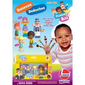Os personagens favoritos das crianças de um jeito que elas nunca viram Nesta versão dedoches, a Turma do Mundo de Bita irá trazer toda a magia para as historinhas contadas em casa São 5 miniaturas totalmente em vinil e com a pintura igual às dos personagens.