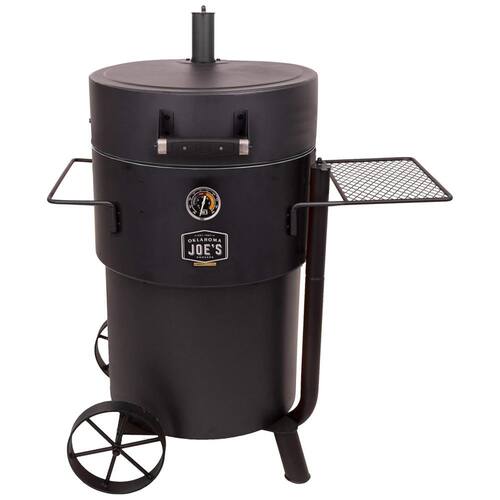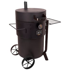 Cesta de carvão de grandes dimensões contém combustível suficiente por mais de 15 horas de tempo para fumar A construção de aço de bitola pesada oferece durabilidade construída para durar Medidor de temperatura montado em barril com detalhes brilhantes no escuro