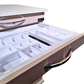 DEKI MÓVEIS CLÍNICOS: Qualidade e conforto para os cuidados veterinários.O Carrinho Auxiliar para Medicina Veterinária da DEKI MÓVEIS CLÍNICOS é a solução ideal para a organização e praticidade no ambiente veterinário. Com suas cinco gavetas e alças, oferece espaço amplo para armazenar equipamentos, medicamentos e instrumentos essenciais. Sua construção resistente e de fácil limpeza garante durabilidade e higiene impecáveis. O design funcional e ergonômico do carrinho permite fácil movimentação e acesso rápido aos itens necessários durante os atendimentos veterinários. Com o Carrinho Auxiliar para Medicina Veterinária da DEKI MÓVEIS CLÍNICOS, você terá um ambiente de trabalho mais organizado e eficiente, proporcionando cuidados de qualidade aos seus pacientes animais.VANTAGENSVersatilidade: A DEKI MÓVEIS CLÍNICOS oferece uma ampla variedade de modelos de mesas auxiliares, destacando-se pela sua versatilidade em diversos ambientes.Durabilidade: Essas mesas são reconhecidas pela sua durabilidade excepcional, sendo fabricadas com materiais de alta qualidade que garantem sua longa vida útil.Praticidade: Com sua praticidade, as mesas auxiliares são leves e fáceis de movimentar, adaptando-se perfeitamente a diferentes espaços.Ergonomia: O cuidadoso design ergonômico das mesas auxiliares proporciona o máximo conforto ao cliente durante a utilização.Segurança: A resistente e confiável estrutura das mesas auxiliares assegura a estabilidade e segurança do produto.Limpeza: A facilidade de limpeza é uma vantagem significativa, graças ao acabamento em MDF TX, que permite uma manutenção rápida e eficiente. Ideal para ambientes clínicos e hospitalares.Design moderno: O design moderno e refinado das mesas auxiliares da DEKI MÓVEIS CLÍNICOS as torna uma opção esteticamente atraente para realçar a beleza de diferentes ambientes.Variedade: A versatilidade dos modelos disponíveis permite escolher a mesa auxiliar ideal para atender às necessidades específicas de cada cliente.Excelente custo-benefício: Combinando qualidade, resistência, segurança e um preço justo, as mesas auxiliares da DEKI MÓVEIS CLÍNICOS oferecem um excelente custo-benefício, sendo uma escolha inteligente.ATENÇÃO!!! A PRIMEIRA GAVETA NÃO ABRE, É FIXA, SERVE APENAS PARA MOVIMENTAR A MESA AUXILIAR!!!Deki - Móveis Para Medicina VeterináriaJÁ VEM PRONTO!!! A MESA AUXILIAR CHEGA MONTADO ATÉ VOCÊ!!!PRONTA PARA SER UTILIZADA, NÃO PERCA TEMPO COM MONTAGENS!!!BANDEJA DIVISÓRIAAcompanha 01 (uma) bandeja divisória organizadora com 15 (quinze) espaços divididos em tamanhos variados, para acomodar utensílios e materiais pertinentes.QUANTIDADE DE GAVETAS05 (cinco) gavetas distribuídas de forma harmônica, oferecendo espaço suficiente para acomodar diversos utensílios e materiais de trabalho.MATERIALEstrutura (caixaria) em MDF TX Branco e frente das gavetas em MDF Rosa que garante um toque de estilo, com a cor rosa adicionando um diferencial ao design da mesa auxiliar e puxadores fabricados com liga importada da Europa. Materiais de nobilíssima qualidade selecionados pela nossa equipe de especialistas.CORRosa e Branco.MEDIDAS EXTERNASLargura 49cm x Altura 72cm x Profundidade 39cmMEDIDAS INTERNAS2 gavetas com Largura 39,5cm x Altura 4,5cm x Profundidade 30cm2 gavetas com Largura 39,5cm x Altura 9,5cm x Profundidade 30cm1 gaveta com Largura 39,5cm x Altura 15cm x Profundidade 30cmMATERIAL DOS PUXADORESMetal cromado, em liga germânica, prevenindo a oxidação e prolongando a vida útil do móvel.COMPOSIÇÃO5 (cinco) gavetas.QUANTIDADE DE RODÍZIOS04 (quatro) rodízios com tratamento superficial da fixação zincado, as rodinhas possuem maciez e silêncio ao se movimentar, distribuindo o peso proporcionalmente para facilitar a locomoção da mesa auxiliar.QUALIDADENossos produtos são testados e aprovados por uma equipe especializada de profissionais, passam por minuciosos testes de qualidade antes de serem embalados e enviados.GARANTIATODA a linha de produtos da DEKI MÓVEIS CLÍNICOS possuí 3 meses de garantia contra defeitos de fabricação.PRODUTOS A PRONTA ENTREGAA DEKI MÓVEIS CLÍNICOS, possuí todos os móveis em estoque, portanto todos os nossos produtos são a pronta entrega. Garantindo dessa maneira, o MELHOR PRODUTO no MENOR TEMPO DE ENTREGA!AVISOSFique atento, as cores podem sofrer alterações dependendo do seu monitor, além da cor, pequenos detalhes e acabamentos podem não ficar evidentes na foto, por isso as imagens são meramente ilustrativas, podendo ser alterados também os modelos de rodízios, puxadores, cuba e torneira. Todos os nossos produtos são fabricados seguindo todas as normas da ANVISA.LIMPEZA E CUIDADOSEstrutura: Pano umedecido com água/ agente desinfetante;Cuidados: Não utilizar produtos químicos ou abrasivos na limpeza. Evite batidas e o contato com objetos cortantes.