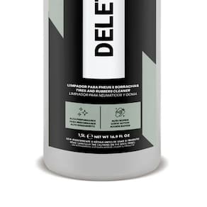 Delet é um limpador de alta performance, formulado exclusivamente para remover sujidade severa em pneus e borrachas, garantindo total limpeza, desenvolvendo originalidade e sem deixar aspecto acinzentado. Essa limpeza ajudará a melhorar a performance dos produtos para condicionar os pneus.