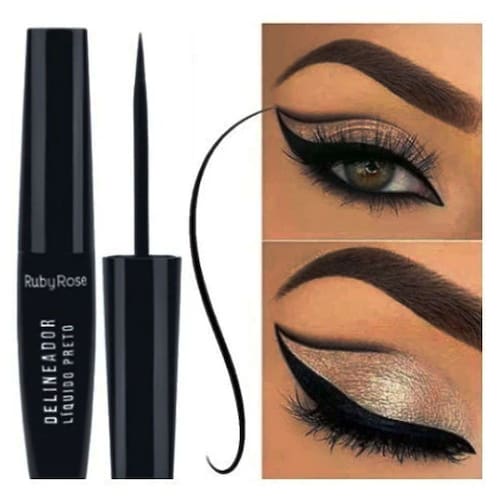 Delineador Líquido Preto Ruby Rose Hb8406 Píncel De Qualidade Cor Preto Efeito Mate