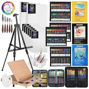 Conjunto de pintura Ultimate de 149 peças libertando o seu artista interior com este conjunto de pintura com tudo incluído de 149 peças O pacote inclui 2 cavaletes 1 cavalete de tripé de alumínio e 1 cavalete de mesa de madeira, 3 crianças de tintas 48 acrílico, 24 aquarela, 24 tubos de tinta a óleo, 3 conjuntos de pincel básico, 3 blocos de papel de desenho, 2 telas esticadas 27 X , 6 painéis de tela 20 x , 5 facas de paleta, 2 paletas de pintura, 1 bacia de pincel, 1 roda de cores. Inclui tudo que você precisa para começar Excelente qualidade Cada item neste kit de pintura de arte inicial tudo em um é feito da mais alta qualidade, premium, resistente e durável nos melhores materiais, o que permitirá que você explore o maravilhoso mundo das tintas com este conjunto de arte com tudo incluído perfeito para qualquer nível de artista Gaste menos, aproveite mais Solução de colocação de material de pintura profissional para atender a vários requisitos de pintura para acrílico, aquarela e pintura a óleo. Com este conjunto de tinta de qualidade Premium, você pode economizar muito tempo escolhendo vários suprimentos de pintura e é mais econômico do que comprar separadamente. Presente de sonho para artistas de todas as idades Este incrível conjunto de pinturas é perfeito para o cultivo de imaginações Um grande presente para artistas iniciantes, avançados ou profissionais, adultos, crianças, meninas ou meninos Para o Natal, uma festa de aniversário ou qualquer outra ocasião. Dê o dom da criatividade Marca: Não Informado