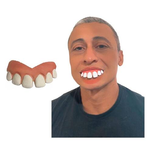 Contém: 1 unidade Dentadura Dentão Grande Engraçado em Látex Fantasia Cosplay