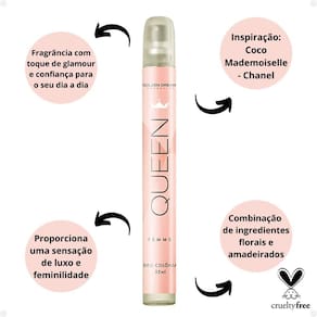 A Deo Colônia Queen é uma fragrância sofisticada e marcante, desenvolvida para mulheres que buscam expressar seu poder e charme de maneira única. Com notas envolventes e uma combinação harmoniosa de ingredientes florais e amadeirados, essa colônia traz um toque de glamour e confiança para o seu dia a dia. Ideal para ocasiões especiais ou para dar um toque de elegância ao seu cotidiano, a Femme Queen exala uma sensação de luxo e feminilidade.