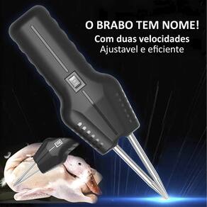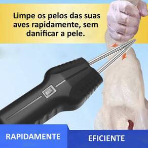 É portátil, possui cabeçote de alta fricção, ajuste automático de aperto, rotação de alta velocidade, depenagem rápida, sem danos à carne.