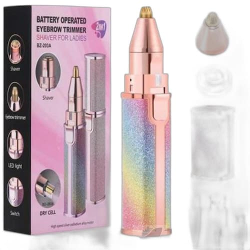 Este aparador de sobrancelhas é adequado para apagar sua sobrancelha indesejada na vida diária. O removedor de pelos do nariz, é conveniente para você aparar as sobrancelhas e depilar o rosto durante as viagens de negócios para manter o brilho e a pele impecável. Este aparador de sobrancelhas é o substituto perfeito para a cera e as pinças tradicionais. Não há mais dor de depilação e arrancamento. Para mulheres suaves em todos os tipos de pele. Realiza um barbear perfeito rente à pele sem causar puxões, cortes, vermelhidão ou irritação. Este aparador de sobrancelhas é o substituto perfeito para a cera e as pinças tradicionais Especificações: