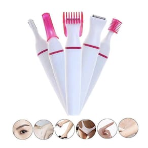 Depilador Feminino Elétrico para Pele Sensível 5 em 1 Sensitive. Conheça a Solução Perfeita de Depilação Feminina Fácil Rápida e Indolor. O depilador elétrico 5 em 1, é um produto desenvolvido exclusivamente para atender mulheres que desejam fazer a sua própria depilação sem sair de casa, manter sua pele lisa, sem alergia e irritação após a depilação.
