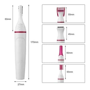 - mini depilador elétrico portátil depilação feminina 5 em 1 - o aparador permite uma maneira simples e sem dor para aparar pelos no corpo. - existem 4 aparadores removíveis que permitem aparar os pelos de diversas partes do seu corpo, incluindo coxas, axilas, costas, peito, sobrancelhas, pelo do do nariz e orelha, e área do biquíni. - um aparelho com 5 funções. - lâmina lavável, fácil de limpar. - necessita de uma pilha aa (não inclusa)