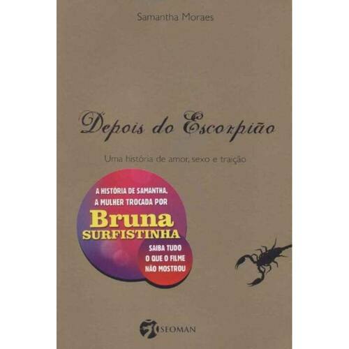 Perder o marido para outra mulher é algo muito sofrido. Imagine então se essa mulher fosse a ex-garota de programa mais conhecida do Brasil. Após seis anos de casamento, foi exatamente isso que aconteceu com Samantha Moraes. Seu marido saiu de casa para viver com Bruna Surfistinha e deixou para trás uma esposa arrasada e duas filhas pequenas. No livro Depois do Escorpião - Uma história de amor, sexo e traição, Samantha Moraes conta sua história desde o início, quando conheceu seu ex-marido aos sete anos de idade. Fala sobre como descobriu a traição através de um fio loiro de cabelo e como está hoje, quando deu a volta por cima e conseguiu se recuperar da separação. Seu livro é uma verdadeira lição de vida para inspirar outras mulheres que temem passar ou passaram pela mesma situação. E, é também um desabafo bem-humorado de uma mulher batalhadora, bonita e inteligente.