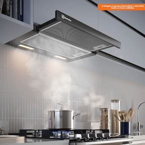 VOLTAGEM 220V Modelo DE6RP - Vidro Preto // DE6RS - Inox // DE6RB - Preto Dimensão Largura: 60 cm Altura: 21,50 cm Profundidade: 30,30 cm Peso: 6,40 kg Vazão máxima (m3/h) 320 (m3/h) Potência (W) 71W Iluminação Sim, duas lâmpadas Velocidades 2 velocidades Baixo nível de ruído 61 dB Filtros Filtro de Alumínio e Filtro de Carvão Ativado Conteúdo da embalagem Produto, manual, 2 Filtros de carvão, 2 filtros de aluminio, 4 parafusos, 4 porcas, 4 arruelas, redutor de diâmetro. Garantia 12 Meses