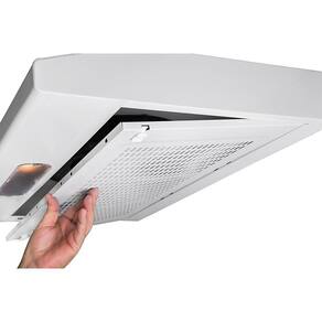 O aparelho aspira o ar impregnado de fumaca e cheiros da cozinha, depurando-o atraves dos filtros anti gordura e carvao ativado, e depois reintroduz o ar purificado no ambiente.
