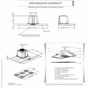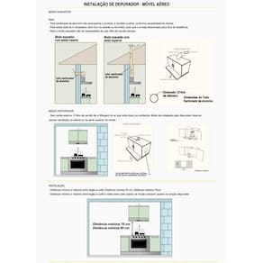 Instalacao apenas de Embutir Observacao, este modelo deve ser embutido em armario aereo, acima do cooktop fogao, o depurador e fixado por parafusos no proprio movel