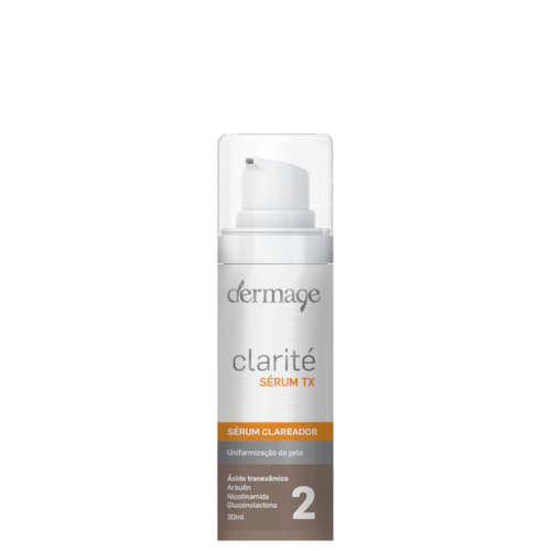 Sérum clareador para peles com melasma e hiperpigmentação. Dermage Clarité Sérum TX uniformiza o tom e previne novas manchas. Indicado para todos os tipos de pele, inclusive as oleosas, acneicas ou com rosácea.