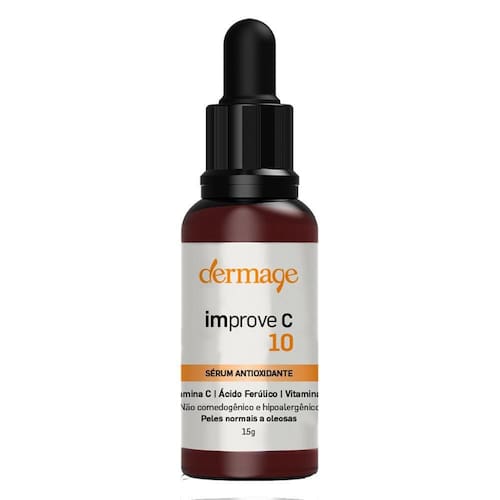 dermage improve c 10 sérum 15g dermage improve c 10 sérum é um tratamento reparador do fotoenvelhecimento cutâneo e possui em sua fórmula poderosos ativos capazes de restaurar a luminosidade da pele e retardar o envelhecimento biológico. Com textura sérum de rápida absorção e toque seco, ele ainda melhora a tonalidade da pele e promove hidratação e luminosidade à pele. Concentrado de vitamina c10 estabilizada associada a vitamina e e ácido ferúlico. Indicação: - ideal para peles mista e oleosas. Benefícios: - pele com tonalidade uniforme;