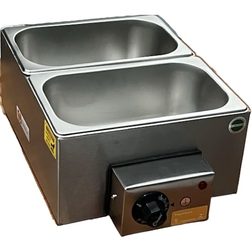 As Derretedeiras Industriais são fabricas em aço inoxidável e possuem cubas gastronômicas removíveis que facilitam o trabalho. As cubas são em aço 304 (material indicado para contato com o alimento), além disso, possuem tampas em todos os modelos. O termostato regulável permite que você defina a temperatura ideal para derreter ou manter o chocolate aquecido.