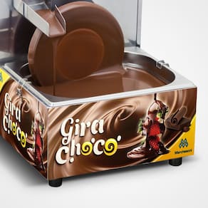 O Gira Choco Marchesoni é perfeito para uso comercial e em eventos Assim como as derretedeiras, o Gira Choco aquece e derrete através do sistema "banhomaria", garantindo a consistência e o sabor do chocolate. Nas festas,eventos e buffets, seu diferencial é o divertido efeito cascata, com uma deliciosa queda de chocolate ideal para um fondue. Perfeito para vitrines de lojas, docerias e sorveterias, seu disco giratório é uma verdadeira atração, conquistando cada vez mais clientes para o seu negócio. Disco em polietileno garantia de aderência do chocolate ao disco, aprovado pela vigilância sanitária; Cuba com capacidade de 5 kg; 100% em aço inox - maior durabilidade; Termostato regulável de temperatura; Tempo médio para derretimento de 45 min; Dupla função: derrete e mantém aquecido fornecendo uma queda de chocolate para coberturas; Funcionamento por banhomaria: mantém a consistência e sabor; Disco, cuba e bica removíveis que facilitam a limpeza; Ideal para derreter chocolate; Indicado para buffets, festas, eventos, sorveterias, docerias, confeitarias e também para uso doméstico. Modelo: GC.1.151/152 Capacidade: 5 kg; Consumo: 750w / 0,75 kw/h; Alimentação: 127v ou 220v; Medidas do Produto CxAxL : 34 x 32 x 45 cm; Medidas da Embalagem CxAxL : 36 x 40 x 46 cm; Peso Líquido: 7,6 kg; Peso Bruto: 7,8 kg. Ean: 7898131066742
