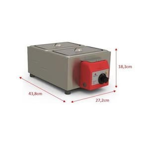 Usada por confeiteiros, doceiros e boleiros para derreter chocolates a Derretedeira conta com capacidade de 2,5 kg por cuba totalizando 5 kg e termostato com luz sinalizadora.