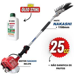 Itens Inclusos: 1 Haste Profissional Nakashi, 1 ;Kit Derriçador Nakashi KD 257-D2, 1 Motor Nakashi NK 270, 1 ;Manual de Instrução e 1 Óleo Stihl. ;