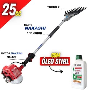 Derriçadeira Profissional Nakashi DT2L270N com Haste 1100mm Motor Nakashi 25,4cc e Kit Turbo 2 + Óleo Castrol Stihl 500ml