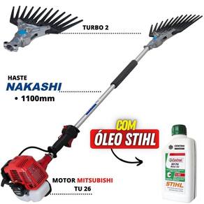 Derriçadeira Profissional Nakashi DL262MT2 com Haste 1100mm Motor Mitsubishi TU-26 de 25,6cc e Kit Turbo 2 + Óleo Castrol Stihl 500ml
