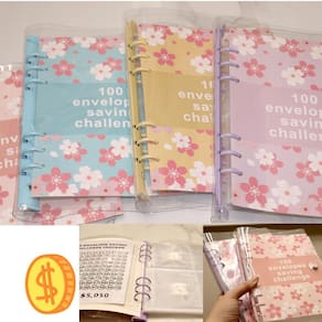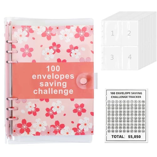 ?Money Saving Challenge Book?Vem com um fichário de PVC tamanho A5 (9 polegadas de altura x 7 polegadas de largura), 1 rastreador laminado reutilizável e bolsas rotuladas de 1 a 100 da forma tradicional de economizar $5.050.