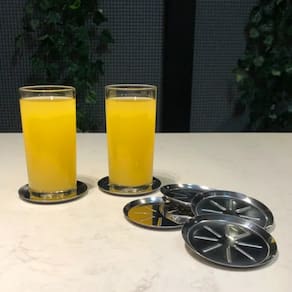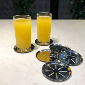 Com o Conjunto de Porta Copos em Aço Inox 6 Peças você protege sua mesa e móveis, sem perder a elegância e sofisticação. Podendo ser utilizado em bufês ou eventos. Por ser totalmente em aço inox traz durabilidade e um brilho único para o ambiente.