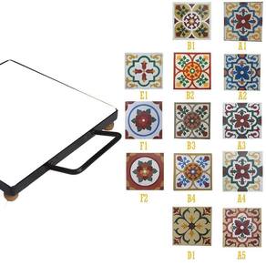 Linha em ferro com ladrilho hidráulico super estiloso e de alto requinte para servir o seu almoço. Impede que as travessas quentes danifiquem as mesas. Produto que possui alta durabilidade, totalmente leve e que proporciona praticidade e elegância na hora das refeições. Em seu superior revestido de azulejo decorado com pinturas peculiares, trazendo elegância e um estilo rústico para sua cozinha.