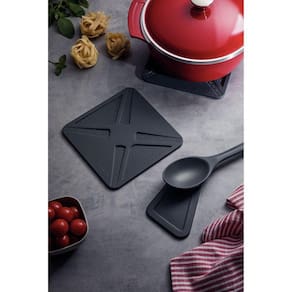 Descanso para panelas de silicone que resiste uma temperatura de até 290 C. Pode ir à máquina de lavar louças facilitando seu dia a dia.