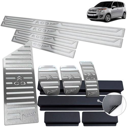 Fabricado em aço inox 304 o kit soleiras, vinil, pedaleiras e descanso de pé além de ajudar a proteger o local onde há o desgaste devido o calçado ficar o tempo todo esfregando, deixará o interior do veículo personalizado e com muito mais estilo.