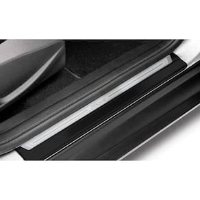 Fabricado em aço inox 304 o kit soleiras, vinil, pedaleiras e descanso de pé além de ajudar a proteger o local onde há o desgaste devido o calçado ficar o tempo todo esfregando, deixará o interior do veículo personalizado e com muito mais estilo.