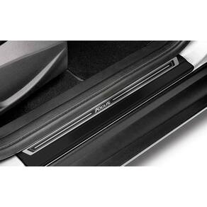 Fabricado em aço inox 304 o kit soleiras, vinil, pedaleiras e descanso de pé além de ajudar a proteger o local onde há o desgaste devido o calçado ficar o tempo todo esfregando, deixará o interior do veículo personalizado e com muito mais estilo.
