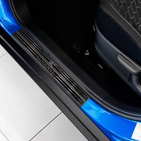 Fabricado em aço inox 304 o kit soleiras, vinil, pedaleiras e descanso de pé além de ajudar a proteger o local onde há o desgaste devido o calçado ficar o tempo todo esfregando, deixará o interior do veículo personalizado e com muito mais estilo.