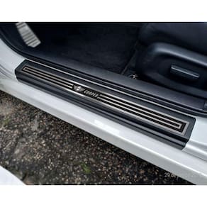 Fabricado em aço inox 304 o kit soleiras, pedaleiras e descanso de pé além de ajudar a proteger o local onde há o desgaste devido o calçado ficar o tempo todo esfregando, deixará o interior do veículo personalizado e com muito mais estilo.