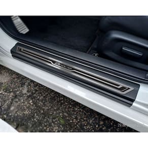 Fabricado em aço inox 304 o kit soleiras, vinil, pedaleiras e descanso de pé além de ajudar a proteger o local onde há o desgaste devido o calçado ficar o tempo todo esfregando, deixará o interior do veículo personalizado e com muito mais estilo.