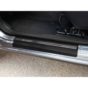 Fabricado em aço inox 304 o kit soleiras, vinil, pedaleiras e descanso de pé além de ajudar a proteger o local onde há o desgaste devido o calçado ficar o tempo todo esfregando, deixará o interior do veículo personalizado e com muito mais estilo.