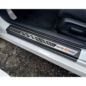 Fabricado em aço inox 304 o kit soleiras, vinil, pedaleiras e descanso de pé além de ajudar a proteger o local onde há o desgaste devido o calçado ficar o tempo todo esfregando, deixará o interior do veículo personalizado e com muito mais estilo.