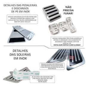 Fabricado em aço inox 304 o kit soleiras, vinil, pedaleiras e descanso de pé além de ajudar a proteger o local onde há o desgaste devido o calçado ficar o tempo todo esfregando, deixará o interior do veículo personalizado e com muito mais estilo.