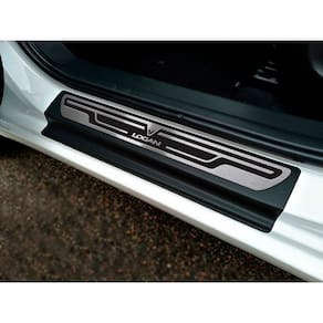 Fabricado em aço inox 304 o kit soleiras, vinil, pedaleiras e descanso de pé além de ajudar a proteger o local onde há o desgaste devido o calçado ficar o tempo todo esfregando, deixará o interior do veículo personalizado e com muito mais estilo.