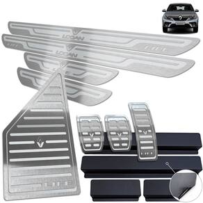 Fabricado em aço inox 304 o kit soleiras, vinil, pedaleiras e descanso de pé além de ajudar a proteger o local onde há o desgaste devido o calçado ficar o tempo todo esfregando, deixará o interior do veículo personalizado e com muito mais estilo.