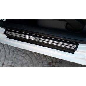 Fabricado em aço inox 304 o kit soleiras, vinil, pedaleiras e descanso de pé além de ajudar a proteger o local onde há o desgaste devido o calçado ficar o tempo todo esfregando, deixará o interior do veículo personalizado e com muito mais estilo.
