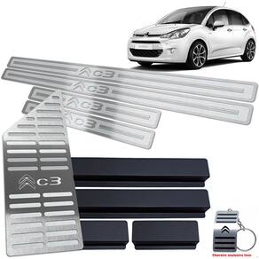 Descanso + Soleira Citroen C3 2013 A 2020 Prata Alto Relevo