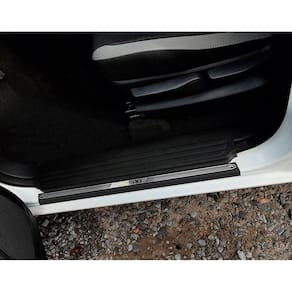 Fabricado em aço inox 304 o kit soleiras, vinil, pedaleiras e descanso de pé além de ajudar a proteger o local onde há o desgaste devido o calçado ficar o tempo todo esfregando, deixará o interior do veículo personalizado e com muito mais estilo.