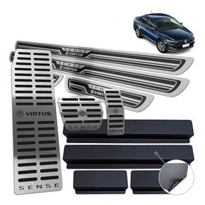Fabricado em aço inox 304 o kit soleiras, vinil, pedaleiras e descanso de pé além de ajudar a proteger o local onde há o desgaste devido o calçado ficar o tempo todo esfregando, deixará o interior do veículo personalizado e com muito mais estilo.