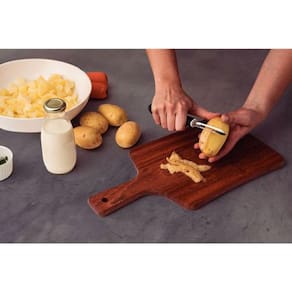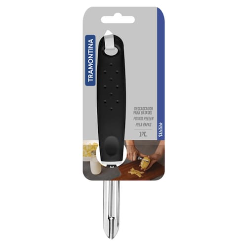 A rotina na cozinha não precisa ser barra pesada. Com o Descascador de Batatas Manual Tramontina Utilitá em Aço Inox com Cabo de Polipropileno Preto você pode preparar os ingredientes da sua receita com mais praticidade, conforto e tranquilidade. A linha Utilità traz para o seu dia a dia utensílios que proporcionam beleza para o ambiente, além de modernidade e qualidade, pois a peça é produzida com lâmina em aço inox, altamente durável, e com cabo de polipropileno, que torna o manuseio mais confortável.