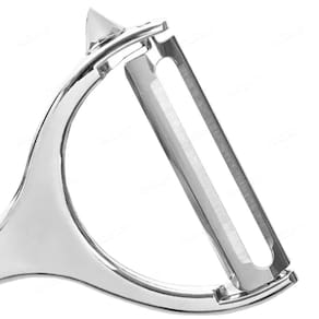 O Descascador de legumes em Liga de zinco é perfeito para o seu dia a dia culinário. É uma ferramenta resistente e com alta durabilidade, para cascas de legumes grossas, a lâmina de metal é de alta qualidade evitando que o descascador enferruja, durável e anticorrosivo, pode ser lavado na lava-louças e fácil de guardar, totalmente compacto. A lâmina giratória é ultra afiada, pode manter o mínimo de resistência ao descascar, e se ajusta perfeitamente à pele dos legumes, não obstrui com descascas e poupa tempo e trabalho.