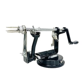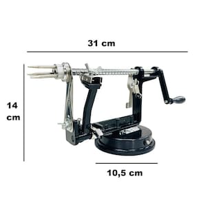 O Descascador Multiuso Laranja Maça Manual com Manivela é adequado para maçãs, batatas, tomates, frutas, vegetais e muito mais. Sua estrutura é feita de metal e aço inoxidável, o que o torna resistente e durável.