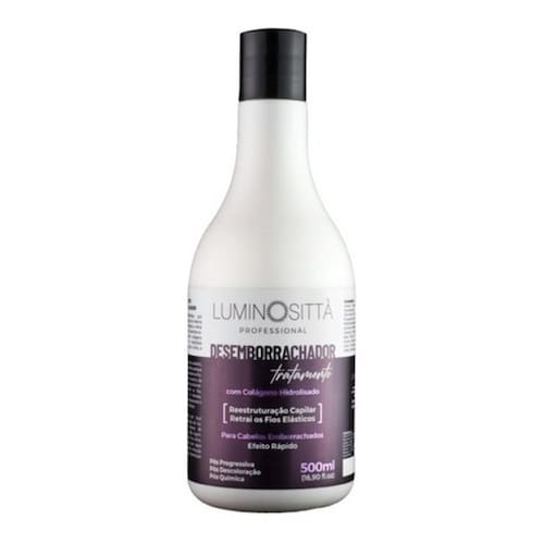 Desemborrachador tratamento capilar 500ml luminosittà o desemborrachador da luminosittà transforma os cabelos elásticos e emborrachados pela ação de processos químicos em cabelos saudáveis, macios e recuperados em minutos. O desemborrachador melhora o volume e a sensação do cabelo danificado e suaviza a cutícula dos cabelos e deve ser utilizado imediatamente após o processo químico. Seu uso é indicado para elásticos, emborrachados, fragilizados, danificados e porosos, ou seja, cabelos que ficaram muito finos; cabelos que se quebram ao pentear; com muito frizz; esticamento do fio até se quebrar principalmente com os cabelos molhados e assim por diante.