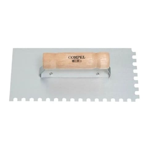 Especificações do Produto: Desempenadeira de aço dentada, banhada em verniz anti oxidação. Medidas 12cm x 25,5cm Cabo de Madeira tratada anatômico Indicações: Ideal para aplicação de argamassas,massa corrida,texturas entre outros. Auxilia também na preparação e no nivelamento de superfícies. Proporciona facilidade e conforto na execução dos serviços. MARCA: COMPEL 12 Ean: 7897613524015