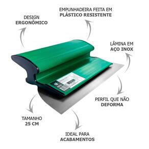 Com tamanho compacto de 25 cm, é perfeita para trabalhos em áreas menores, permitindo uma aplicação mais precisa e uniforme dos materiais. O cabo ergonômico garante conforto e firmeza no uso, reduzindo o esforço durante o trabalho e promovendo um acabamento profissional.